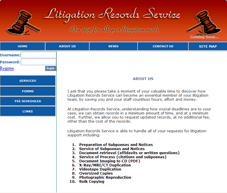 Litigation Record Services Entire site design and coding, HTML, PHP, MySQL |